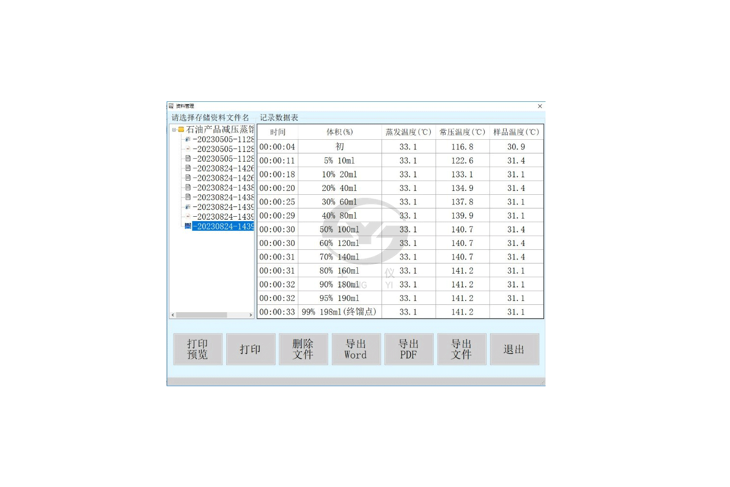 11、用户只需按一个键,就可记录下初馏点及其时间或当前回收体积下的回收温度及其时间。