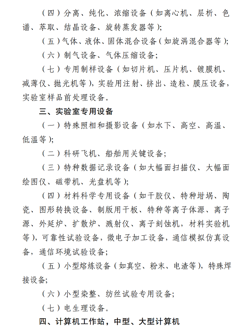 主要涉及四大门类:实验环境方面、样品制备设备和装置、实验室专用设备、计算机工作站,中型、大型计算机。