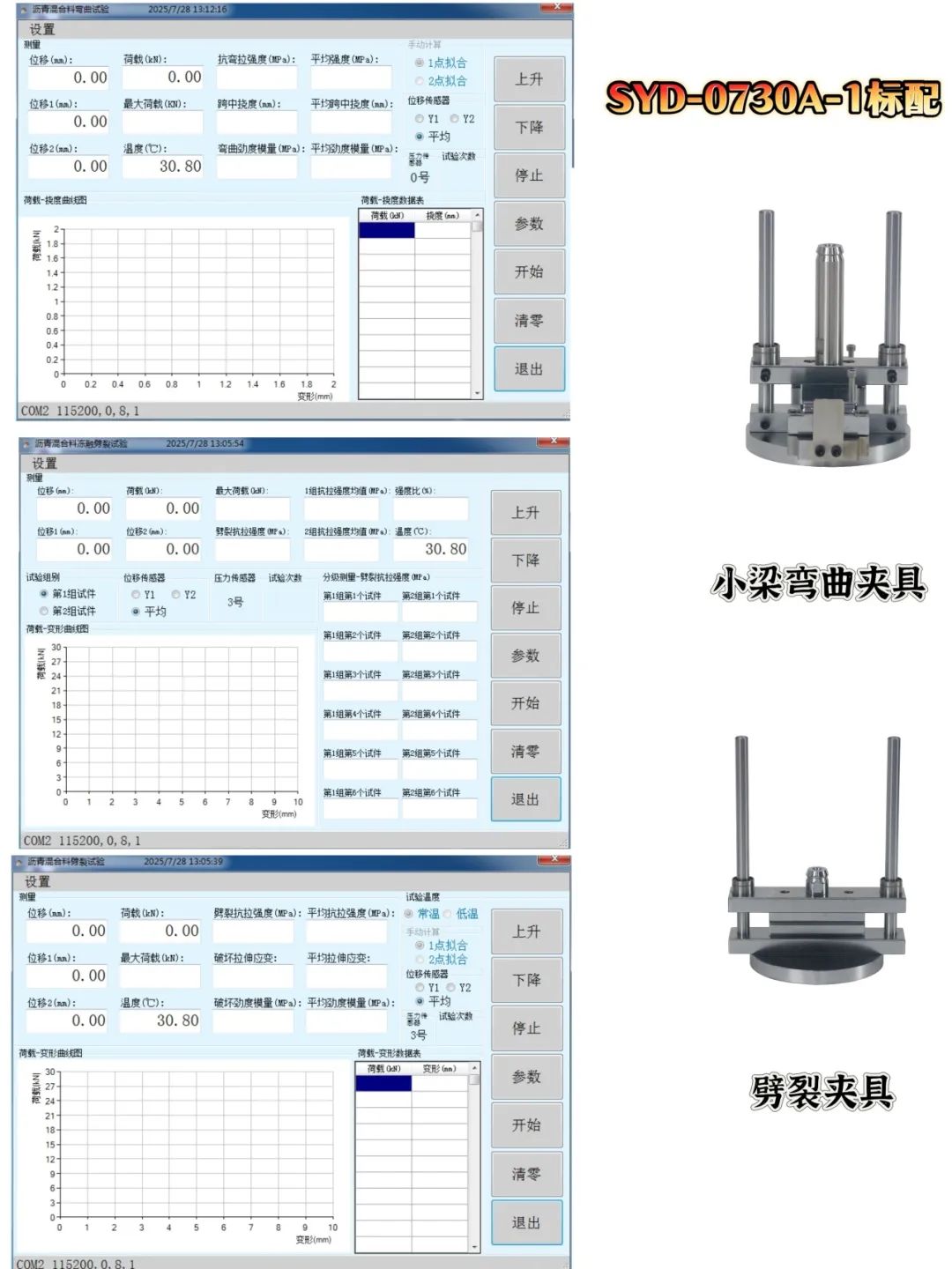 定位:功能精简实用,带数据上传工作,软件自带6种标准测试模块,标配小梁弯曲、劈裂夹具,覆盖常规沥青混合料压力试验需求。